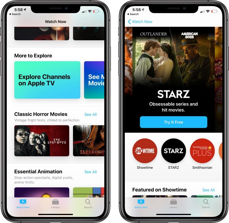 So, for example, if you come across a show you want to watch on your iPhone or Apple TV that's on Showtime or Starz, you can tap to subscribe right in the TV app, and then you can watch that show without having to open another app.